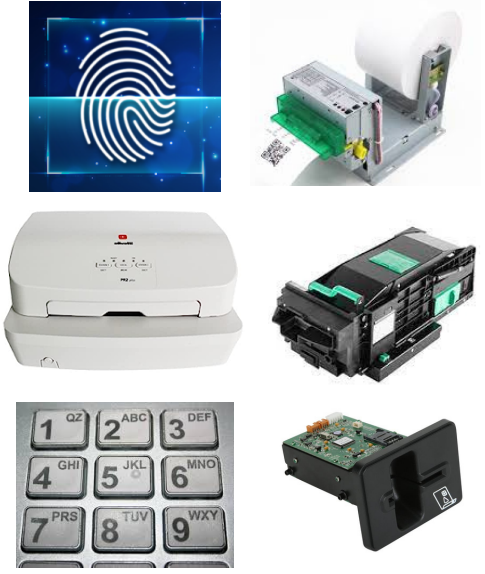 Acceptors, Fingerprint devices, Scanners, Receipt Printers, Cash